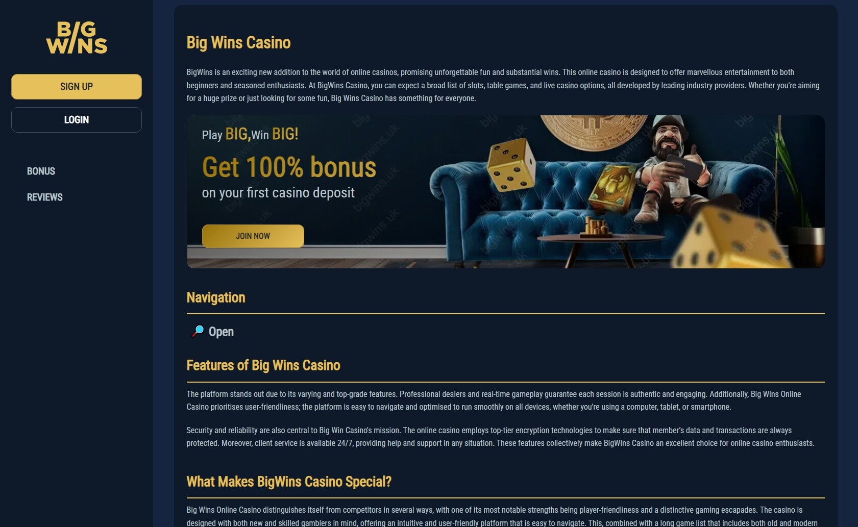 Bigwins casino site incentives